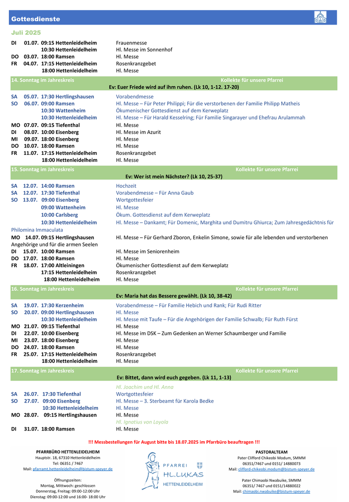 Pfarrbrief Kath. Pfarramt Mariä Himmelfahrt Ramsen