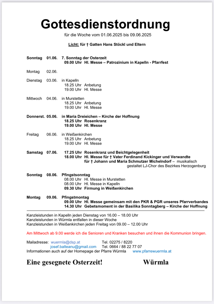 Pfarrbrief St. Simon und Judas Weißenkirchen an der Perschling