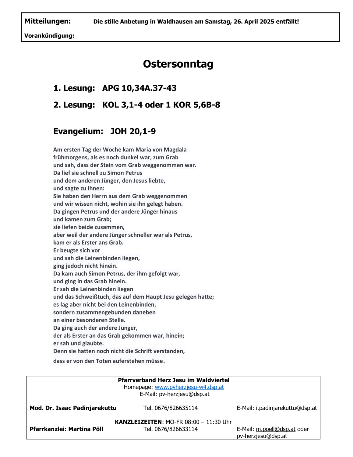 Um den Pfarrbrief von Pfarre Brand/Loschberg Rastenfeld kostenlos per E-Mail zu erhalten, tragen Sie Ihre E-Mail-Adresse ein und klicken auf 'Pfarrbrief abonnieren'.
